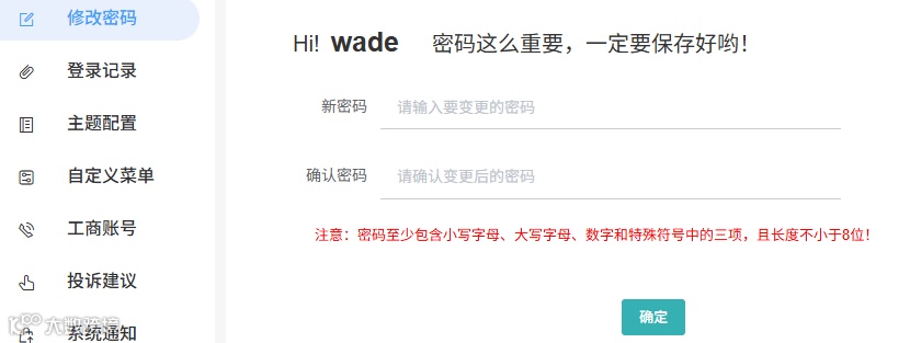 点击「修改密码」,只要满足“小写+大写+数字+特殊符号”中的3项,且长度≥8位,就能设一个“好记又安全”的密码。