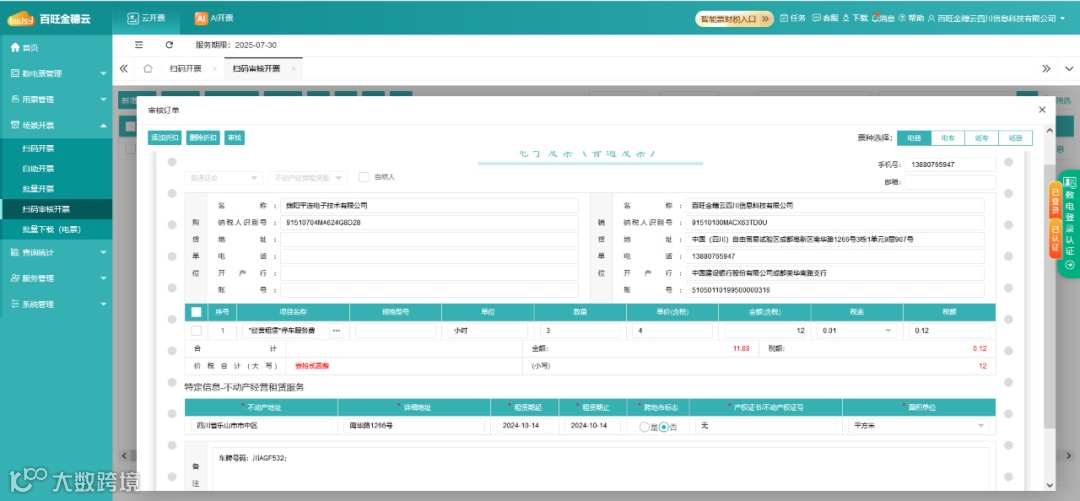 为此,百旺金穗云推出了停车场开票【基础版】,为您提供方便快捷的开票解决方案!