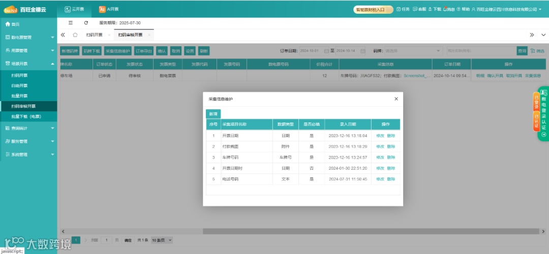 系统后台可以自动采集车辆信息,查看车牌,自动审批开票信息,自动开票,用户打开手机短信、或邮箱链接,即可跳转到开票成功页面,查看发票信息。