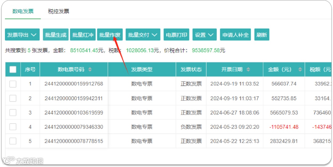 批量打印支持机动车发票、数电纸票批量作废