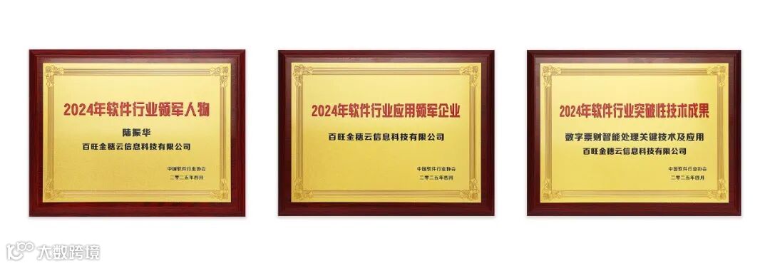 2025年4月24日,由中国软件行业协会主办的第四届中国国际软件发展大会在北京国家会议中心隆重召开。会上,百旺金穗云信息科技有限公司凭借其在财税数字化领域的持续深耕与创新突破,成功斩获三项行业重磅荣誉:董事长陆振华获评“2024软件行业领军人物”,公司荣膺“2024软件行业应用领军企业”,核心技术“数字票财智能处理关键技术及应用”摘得“2024年软件行业突破性技术成果”。此次获奖不仅延续了公司连续两年蝉联“领军人物”与“领军企业”的行业引领地位,更以首获“突破性技术成果”奖项标志着公司在技术研发与场景应用中的前瞻性突破。