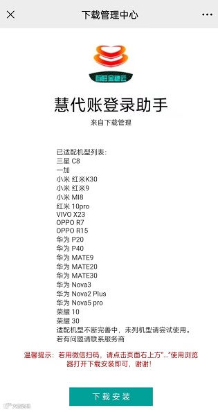 温馨提示:①若用微信扫码,请点击页面右上方“...“使用浏览器打开下载安装即可,谢谢!