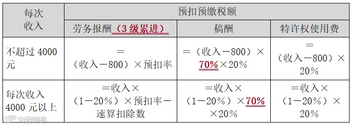 【提示1】全日制学历教育的学生因实习取得的劳务报酬所得按此方法预扣预缴税款。