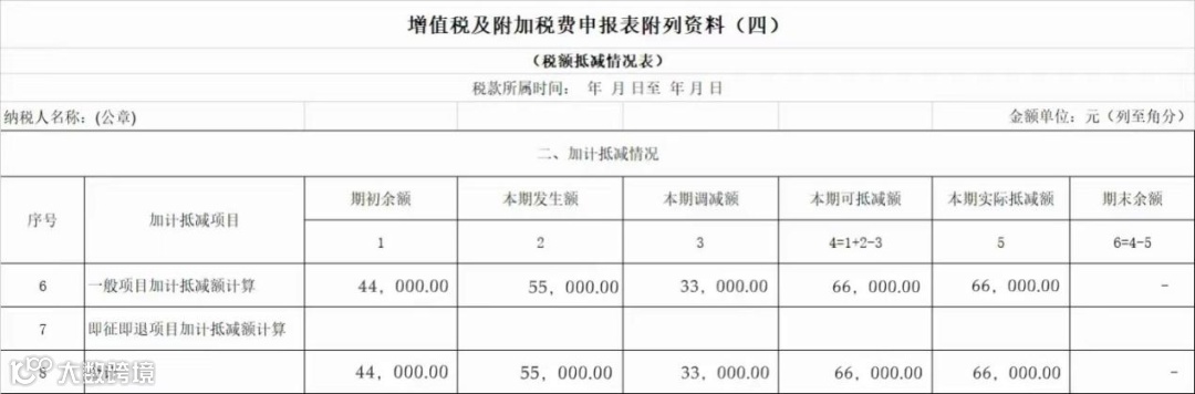当期可抵减加计抵减额=4.4+5.5-3.3=6.6万元