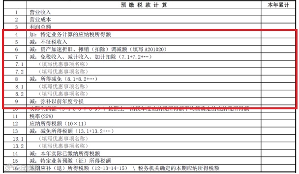 预缴纳税申报表里面的利润总额仅仅是一个基数,需要调增特定业务计算的应纳税所得额、调减不征税收入等数据(详见下图第4行至第9行)计算得出实际利润额。