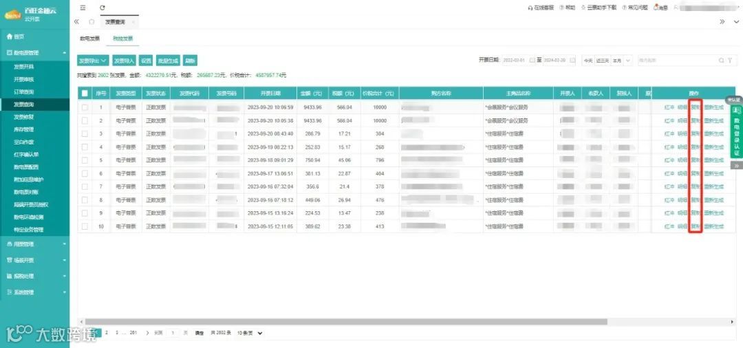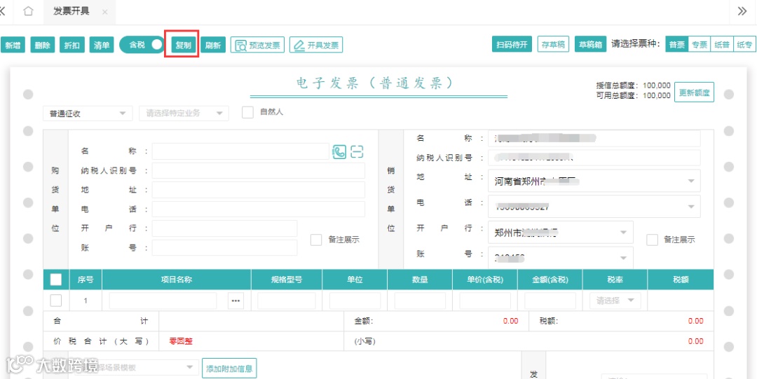 如果您现在开具发票,开具内容和往期开具的发票一样,那么在发票查询中,找到已开发票,直接点击复制,就可以复制之前的发票了,购销方详细信息您可以选择在备注栏展示或不展示。