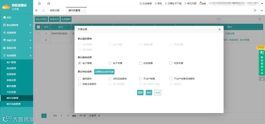 如果我们需要开具的发票是单一票种,那这个功能非常适合您!比如说,企业只开普票或专票,可以进行默认票种的设置,避免因切换票种导致开具错误出现不必要的错填问题。