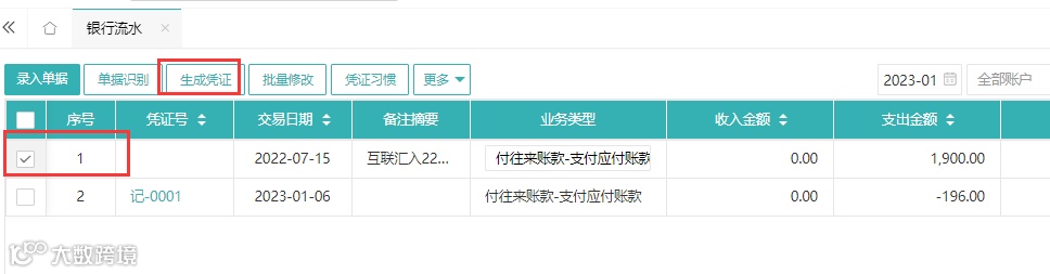 值得一提的是,百旺金穗云慧代账不仅可以一键导入银行流水,还可以上传图片识别银行流水,操作如下:
