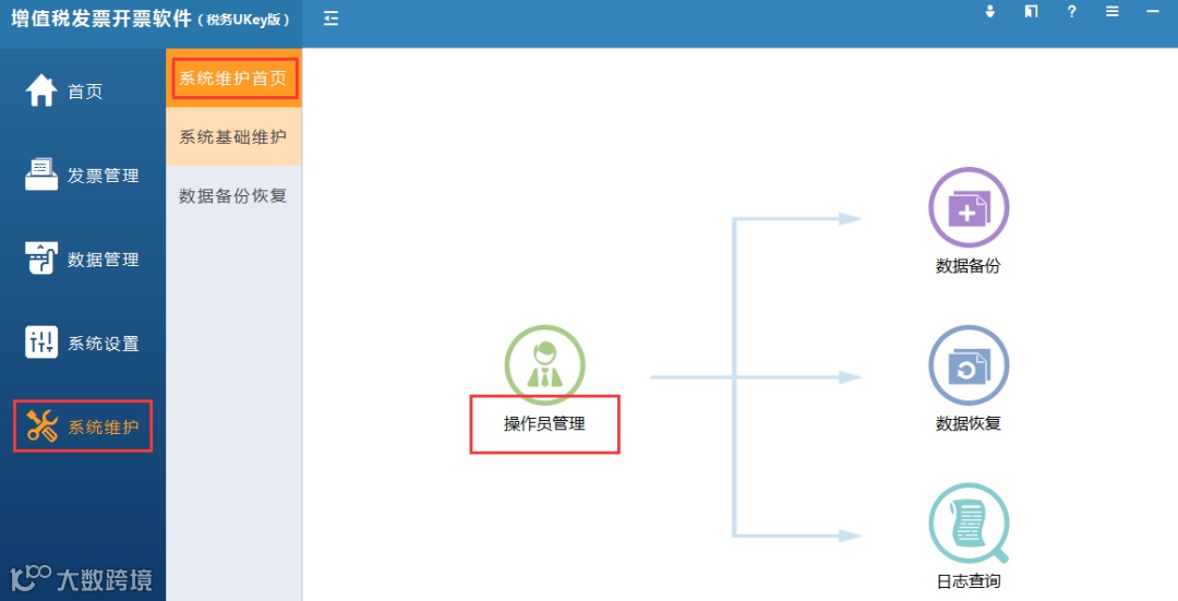 第一步:以管理员账号登录开票软件,点击系统维护-系统维护首页-操作员管理。