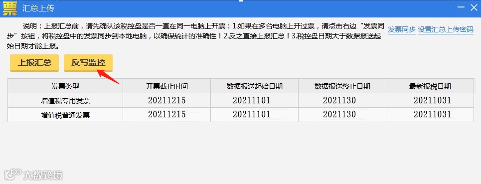 操作流程:点击【数据管理】-【汇总上传】-【反写监控】。