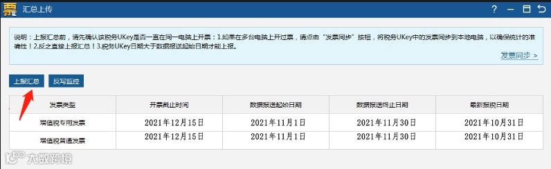 操作流程:重新打开汇总上传界面,查看各发票类型开票截止时间是否更新到下月中旬,若更新,说明操作成功。