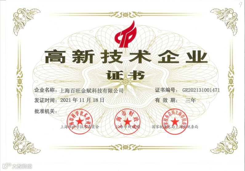 近日,上海百旺在上海市2021年第三批高新技术企业认定中顺利通过,再度荣获“国家高新技术企业”称号。