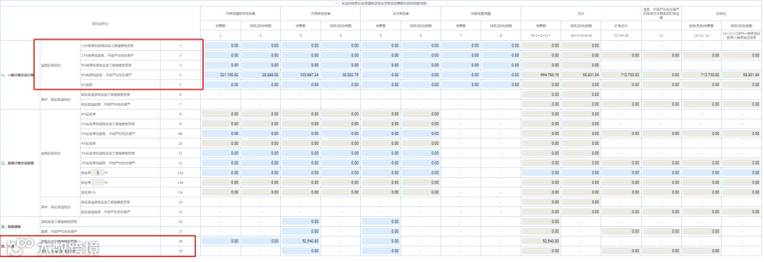 关注重点在2个表,第一个表是附表一,一般征税项目按照实际发生额正常填列,免税项目填写第四大项18、19行次,按照实际发生业务填列。