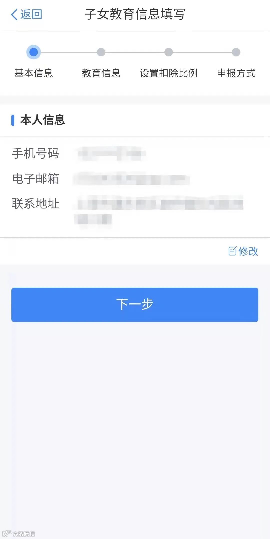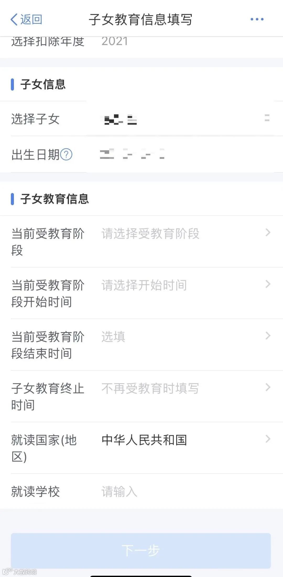 在添加子女信息时,您需如实填写,填写完成后系统会进行信息校验,无误后点击“保存”,点击“选择子女”生成的子女信息,系统会自动跳转到“子女教育信息填写”,请根据子女的受教育信息如实填写,填写完成后,选择“子女教育”的扣除比例。