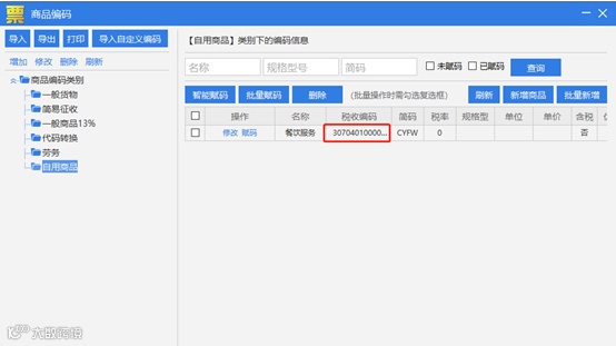 赋码成功后的商品,会有自己的税收编码。