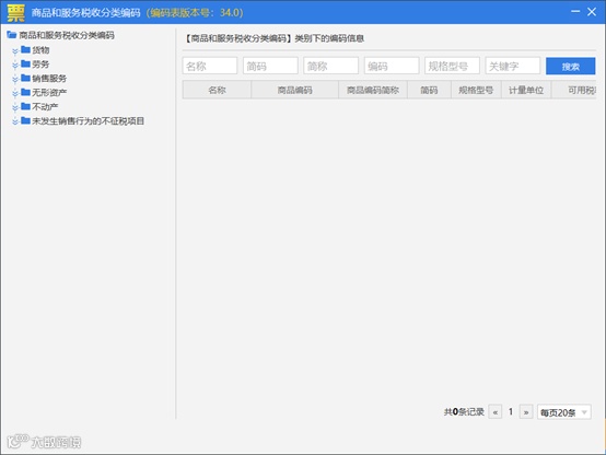 点击【系统设置】-【增值税类商品编码】菜单项,进入商品编码界面。