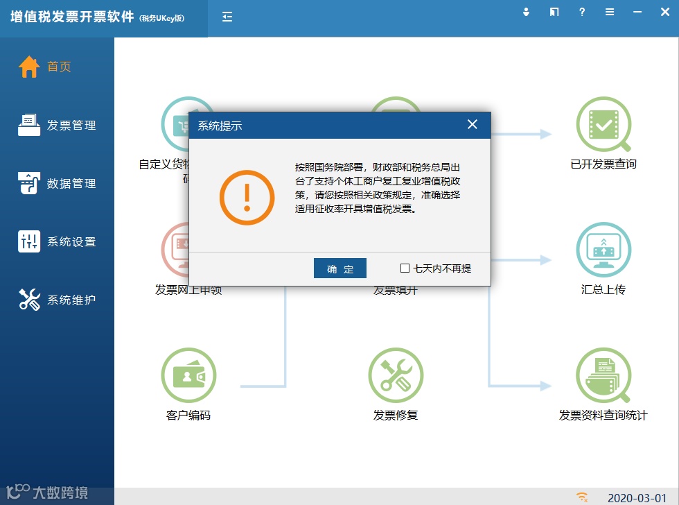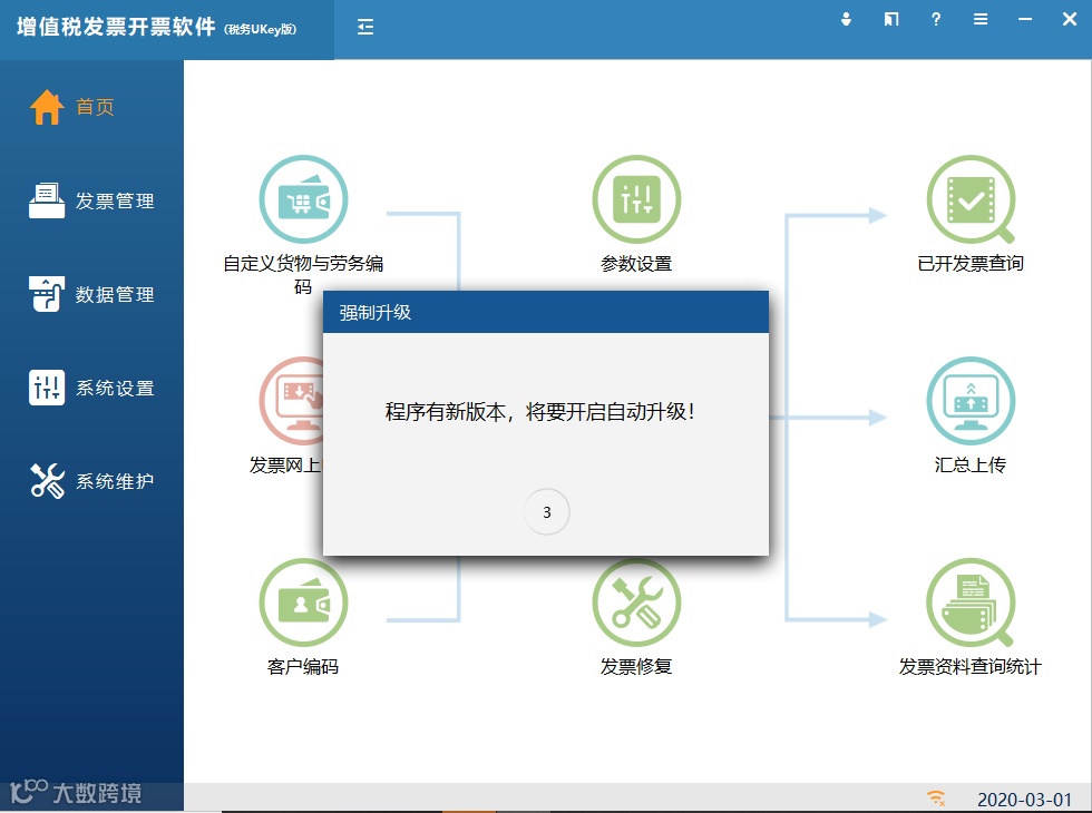 三、升级完成进入开票软件的提示