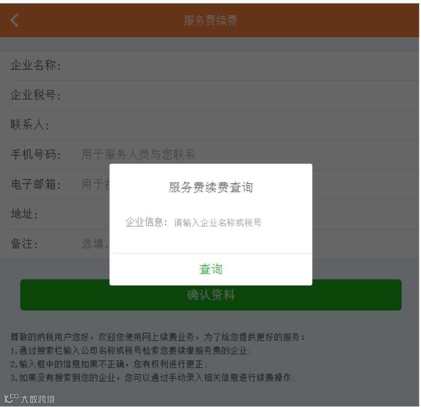 输入企业名称或税号,点击“查询”,查询企业信息;