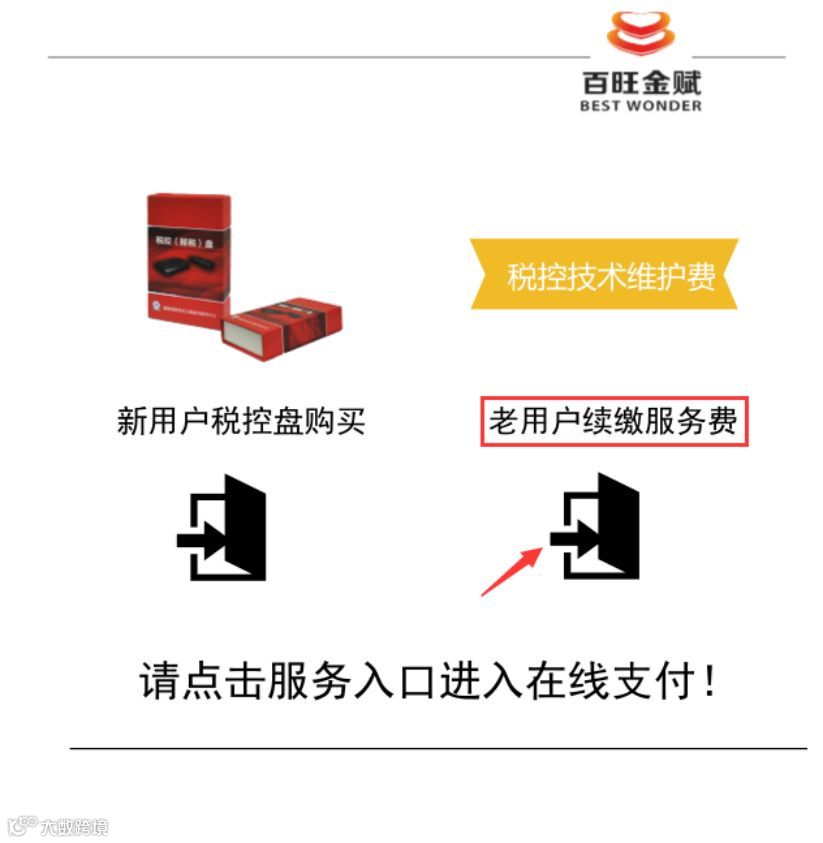关注上海百旺金赋科技有限公司微信公众号(sh_bwjf),打开【百旺服务】-【微缴费】-【老用户续缴服务费】