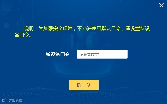 3、输入初始口令之后会跳转到新设备口令设置界面,新设备口令可设置为6-8位数字,首次使用税务UKey需进行设备口令的修改。
