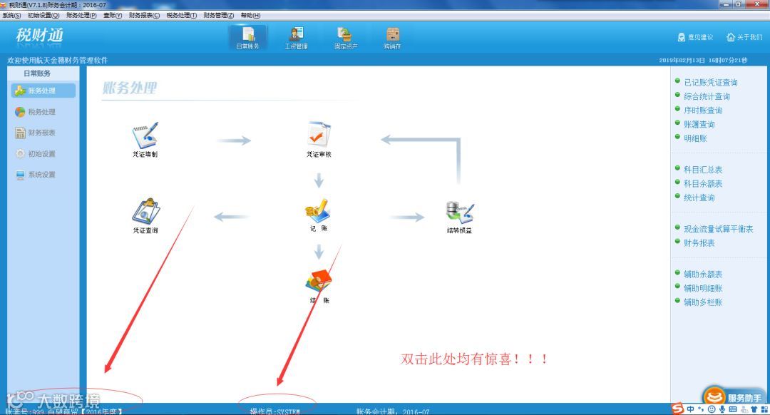 税财通支持双击切换账号,双击切换操作员。您只需要将鼠标移到软件的左下角,选择相应的账套号直接双击,便会弹出来让你选择账套进入,对于操作员也是这样,你只需要放到操作员三个字上面直接双击操作员,便可以直接弹出来切换需要的操作员。
