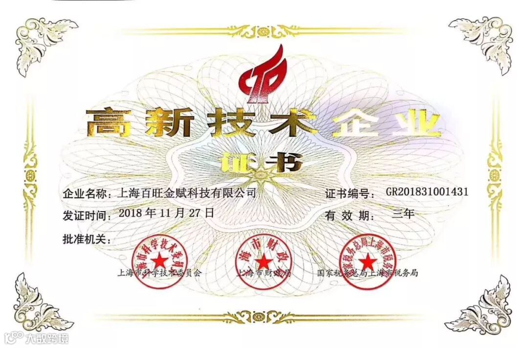 近日,上海百旺金赋科技有限公司根据国家《高新技术企业认定管理办法》和《高新技术企业认定管理工作指引》的相关规定,凭借专业的研发队伍、雄厚的技术实力、持续的创新能力、科学的企业管理,成功获得“高新技术企业证书”,上海百旺由此迈入了国家高新技术企业行列!