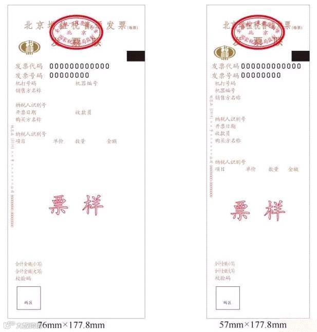 增值税普通发票(卷票)分为两种规格:57mm×177.8mm、76mm×177.8mm,均为单联。