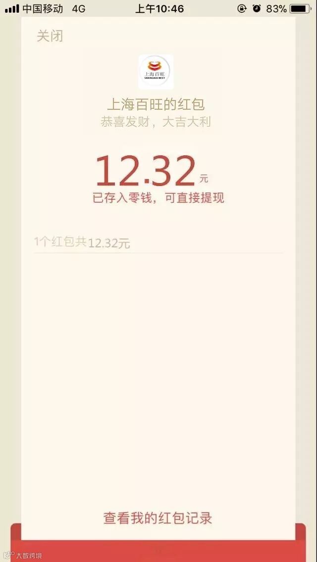 这样在上海百旺官微您就能收到红包。
