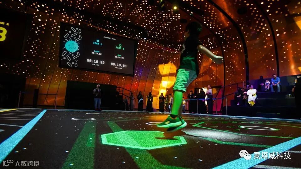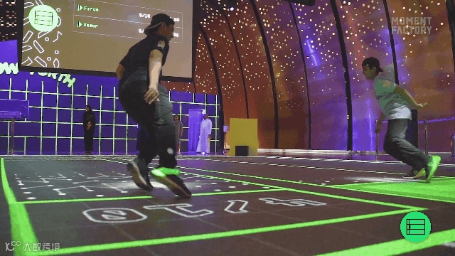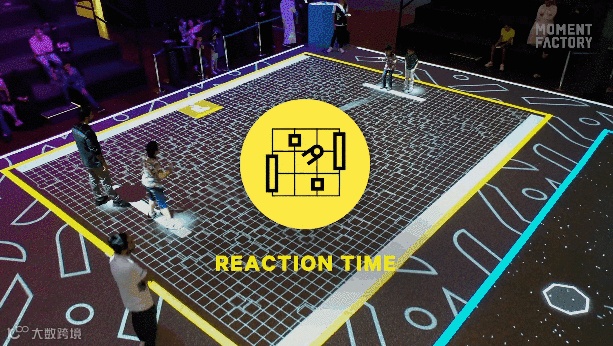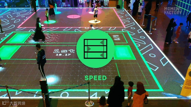 Moment Factory采用了先进的跟踪技术来实时响应身体运动,将地板变成了一个大型运动场,每个玩家都在其中奔跑和跳跃,从而获得了投射在巨型记分板上的得分。