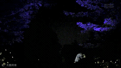 在漆黑的夜晚,面前突然出现了一片片的动感波浪,树上、山坡上顿时都是,像萤火虫一样在眼前翩翩起舞。随之路上的纤长光柱也不停闪烁,像是指引前方的信号灯一样为你照明。