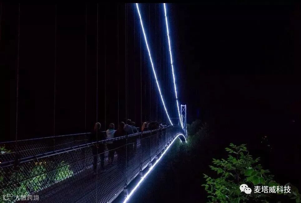 从游客穿过Foresta Lumina神秘迷蒙的门户那一刻起,他们就陷入了一个神奇世界。远远的望见进入魔法森林的第一站是一所吊桥,当夜晚降临,随着桥体发出的幽暗光束,将人们引向未知的探秘之旅。