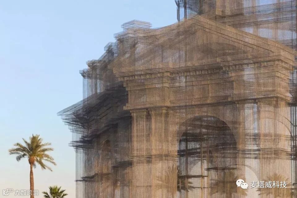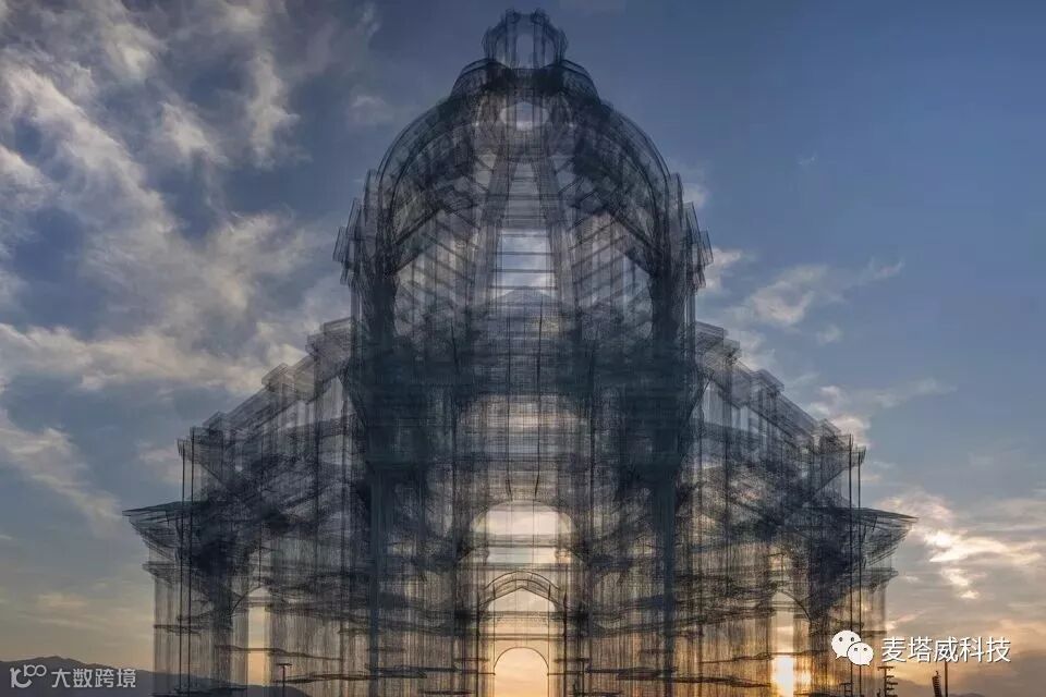 该装置包含三个以新古典主义风格和巴洛克风格建筑为灵感的透明雕塑作品。Etherea”遵循设计师一贯的实验性探索风格,将建筑视作表达场所和空间的工具,以天空和云朵为背景描绘出一个个经典的建筑形态。