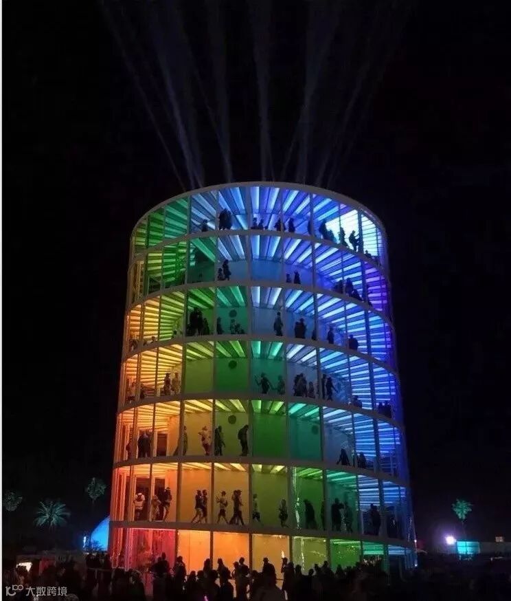 总部位于英国的 NEWSUBSTANCE 设计工作室在科切拉山谷音乐艺术节上初次亮相带来的作品,是一栋7层楼的展厅,游客在其中能够体验到一次有着“不断变化的光、色和透视的旅程”。