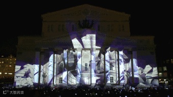 今年剧院广场用于灯光展示三个剧院的外墙