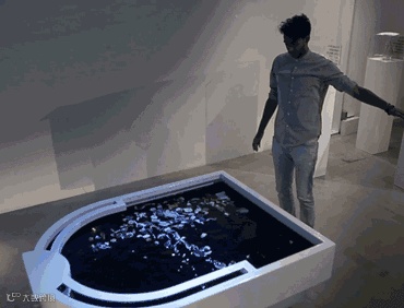 Thijs Biersteker受北大西洋环流基金和De Persgroep委托而创作该作品。这个装置使用了601个防水引擎组成像素网格,还带有用来捕获周围的观众轮廓和移动的运动传感器。