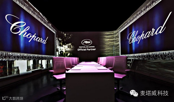 如有品牌活动,则白墙+7部投影机将营造出独特的氛围,下图为瑞士顶级奢华腕表及珠宝品牌萧邦(Chopard)举办的晚宴场景。