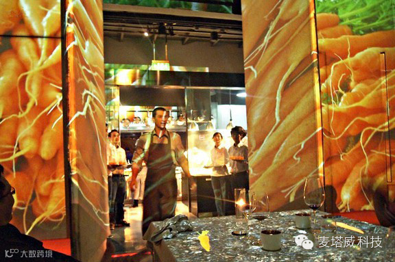 主餐厅是一个类似“骇客帝国”电影里的科幻实验室,四面高墙,“纯白色,未来感”,连窗户都没有。