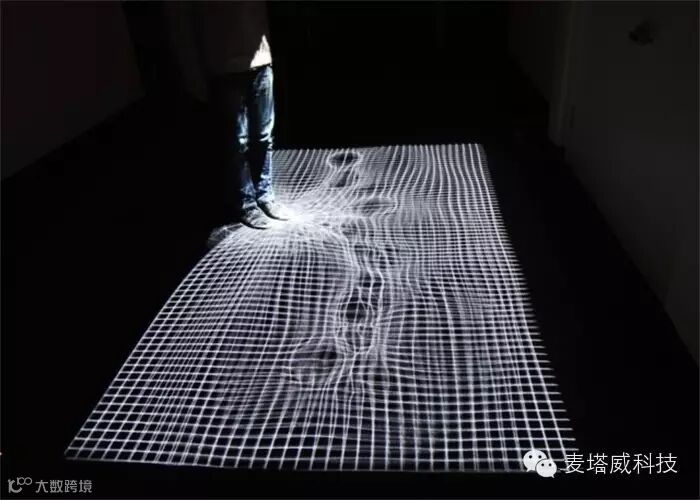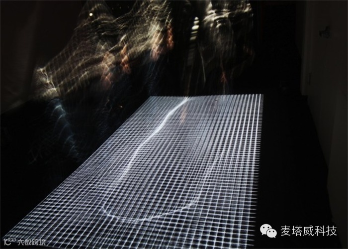 同时,在线用户也可以参与《布料游戏》。添加一个网络应用,用户就可以通过点击来激发不同的视觉和声音效果,或者在《布料游戏》的投影映射界面为现实参与者画一道声音障碍。当使用者跨越这些障碍时就会触发一系列声音。