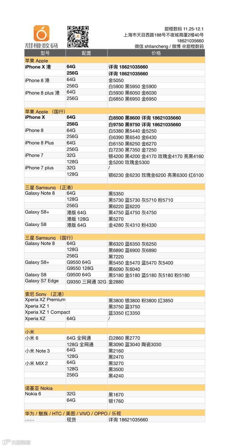 iPhone X 供货仍旧跟不上,所以价格下降有限;iPhone 8 及 plus 价格持续上浮;三星 Galaxy Note 8 大幅度走低,在 100 元左右,S8/S8+ 价格也有 50 元左右走低;小米 MIX 2 价格明显走低;索尼各款稳步走低 2、30 元。