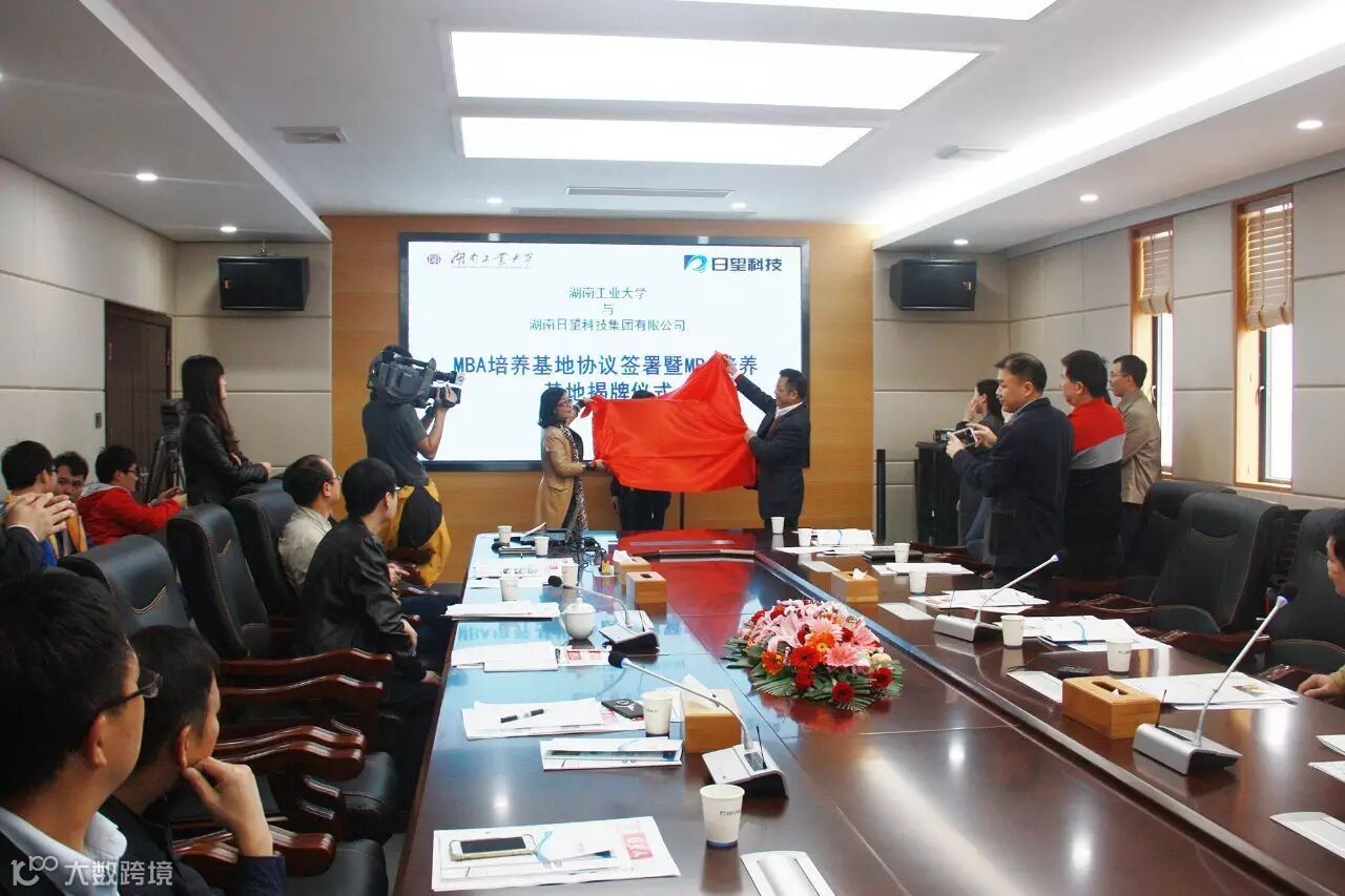 之后双方达成协议,由彭军董事长、谭益民校长双方共同签署了《校企产学研合作协议》。总经理马洪亮、副院长王欢芳双方代表共同签署了《湖南工业大学MBA培养基地建设协议》。彭军董事长、谭益民校长在签署仪式后一齐揭幕MBA培养基地招牌,标志着我司正式与湖南工业大学达成战略合作伙伴关系,同时成为湖南工业大学MBA培养基地。