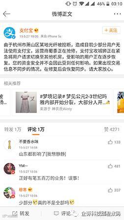 而且除开用户网络不通畅的问题外,移动支付机构本身的网络问题也需要考虑。不知道还有多少锋友记得在 2015 年 5 月份的时候杭州市萧山区某地的光纤不小心被人挖断,导致大范围用户没法使用支付宝交易服务,甚至被传言支付宝遭受黑客入侵,一度引起了社会恐慌。虽然支付宝很快就解决了问题,后来也没再发生这类事件,但既然有前面的案例,以后就算再次发生也是说不定的事情。