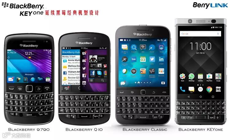 上图依次为BlackBerry 9790、Q10、Classic、KEYone,直板机型也是黑莓特点,黑莓经典并被市场认可的机型中多为直板机型