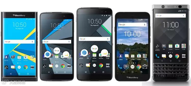 上图为已上市的所有安卓系统黑莓手机型号,依次为PRIV、DTEK50、DTEK60、Aurora、KEYone,其中PRIV是首款采用安卓系统的黑莓型号,DTEK50与DTEK60是贴牌TCL的型号,Aurora是品牌授权给PT BB Merah Putih推出的机型,KEYone是品牌授权给TCL推出的第一款机型。