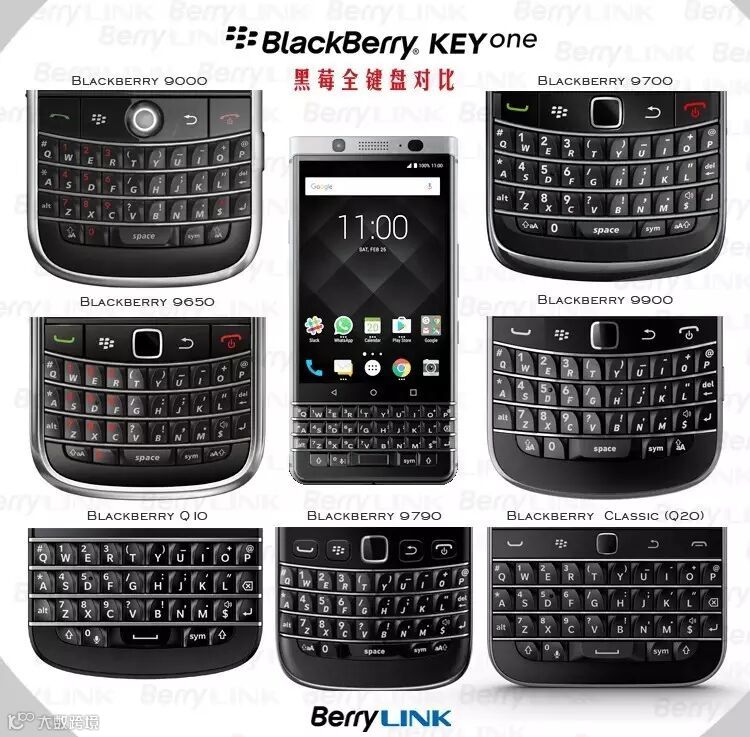 部分经典黑莓机型与KEYone键盘对比图
