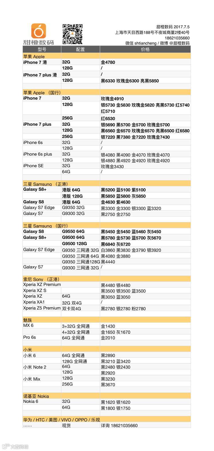三星 Galaxy S8/S8+ 国行版价格走低后,港版机型也有明显走低,港版 S7 Edge 价格也跟着下行;索尼 Xperia XZ Premium 价格稳定,银色款补货到;iPhone 7 及 plus 今日稳定。