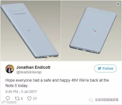 Jonathan Endicott 在 Twitter 上分享了两张 Note 8 的 CAD 草图。