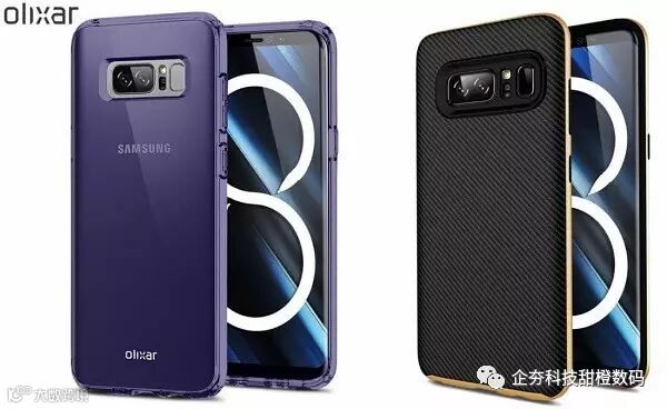 上周的时候,手机配件制造商 Olixar 也披露了几款零售版的 Galaxy Note 8 手机壳(可清楚见到后置双摄和另一侧的指纹传感器布局)。