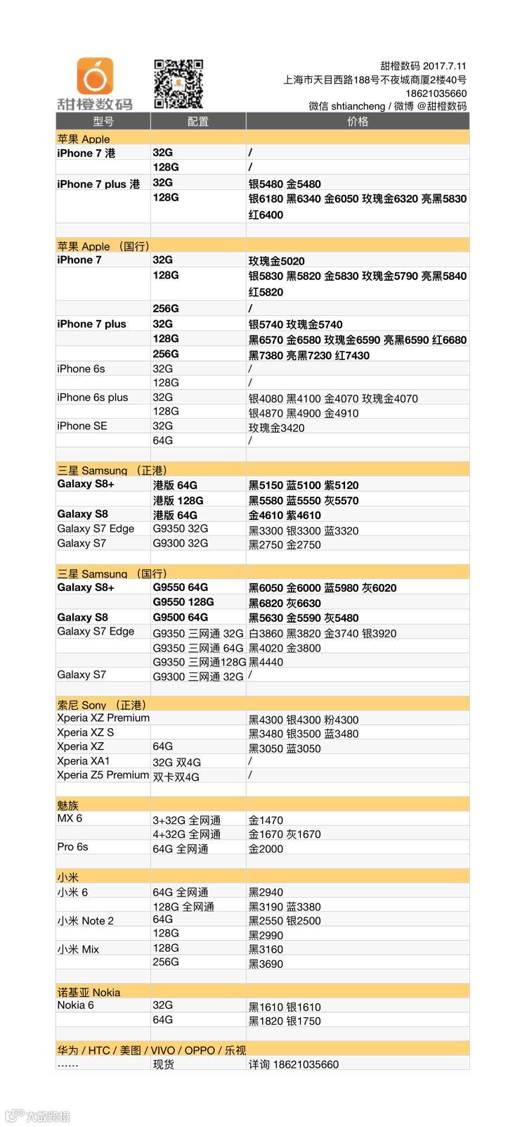 iPhone 7 价格走低,iPhone 7 plus 仍有小幅看涨;三星 Galaxy S8/S8+ 国行版再降;小米部分机型小幅下探 10 元。
