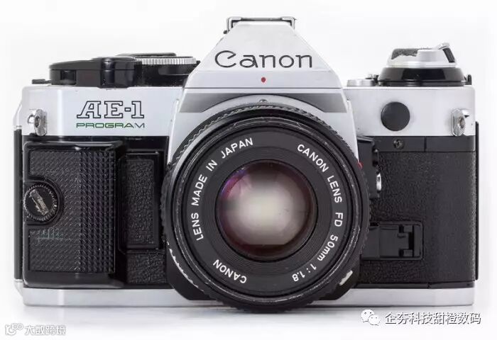 历史:佳能AE-1相机产于1976至1984年间,期间销售数量超过100万部,可谓是当时非常受欢迎的机型。其不仅是当时市场上首款配备TTL自动曝光侦测系统的廉价SLRs相机,而且还是第一部使用了微型处理器的SLR相机。为了尽可能降低成本,佳能AE-1在机身上使用了大量塑料材质,不过这种做法同样换来了更轻的机身重量这一好处。
