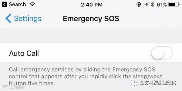 在设置中新增了紧急SOS选项,允许用户激活“Auto Call”功能,在长按睡眠/唤醒按钮5次就会立即拨打911号码。